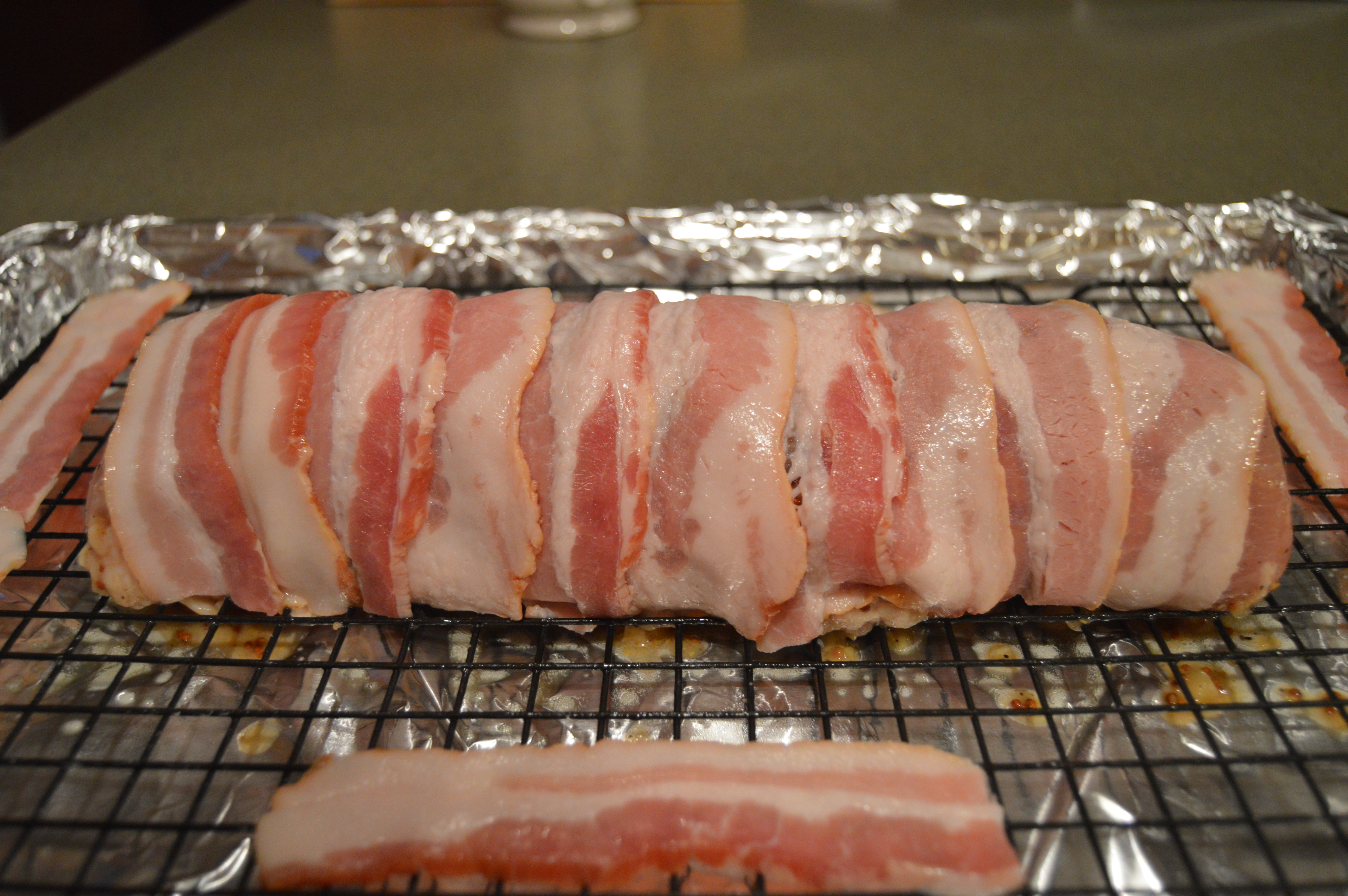 Maple-Mustard Pork Tenderloin Draped in Bacon